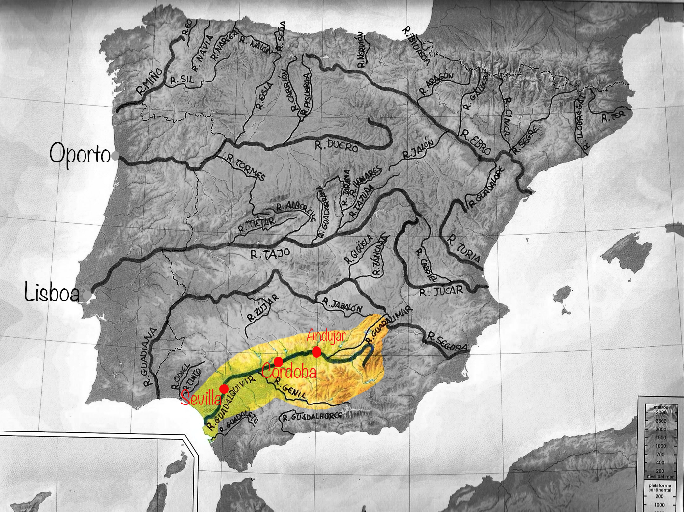 Ciudades importantes / Main towns: Andújar, Córdoba y Sevilla.