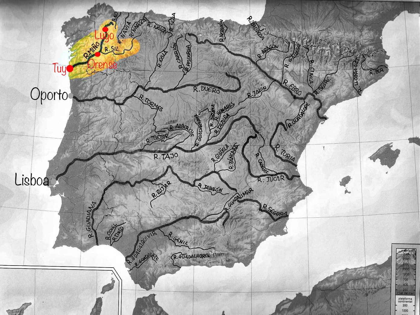 Ciudades importantes / Main towns: Lugo, Orense, Tuy.